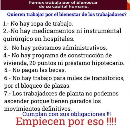 Colapsa Pemex por falta de insumos y prestaciones a sus trabajadores