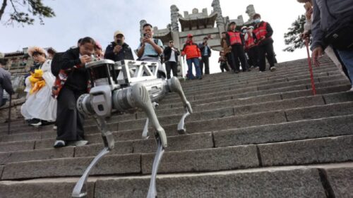 ¡Ladridos de acero! perros robot suben el Monte Tai y limpian sin cansarse