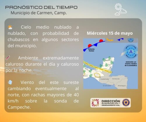PRONÓSTICO DEL TIEMPO Miércoles 15 de mayo