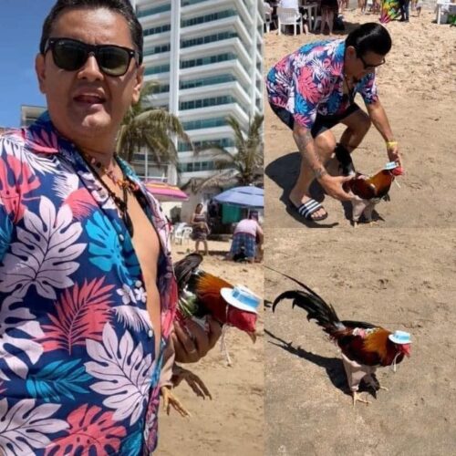 Hombre se fue de vacaciones con su gallo, pues no quería dejarlo sólo en su casa.