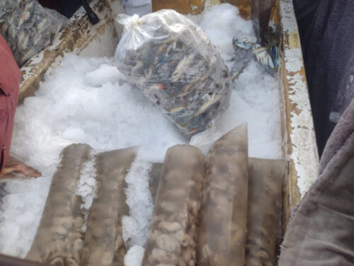 Personal naval en coordinación con Conapesca retiene producto pesquero, en Campeche