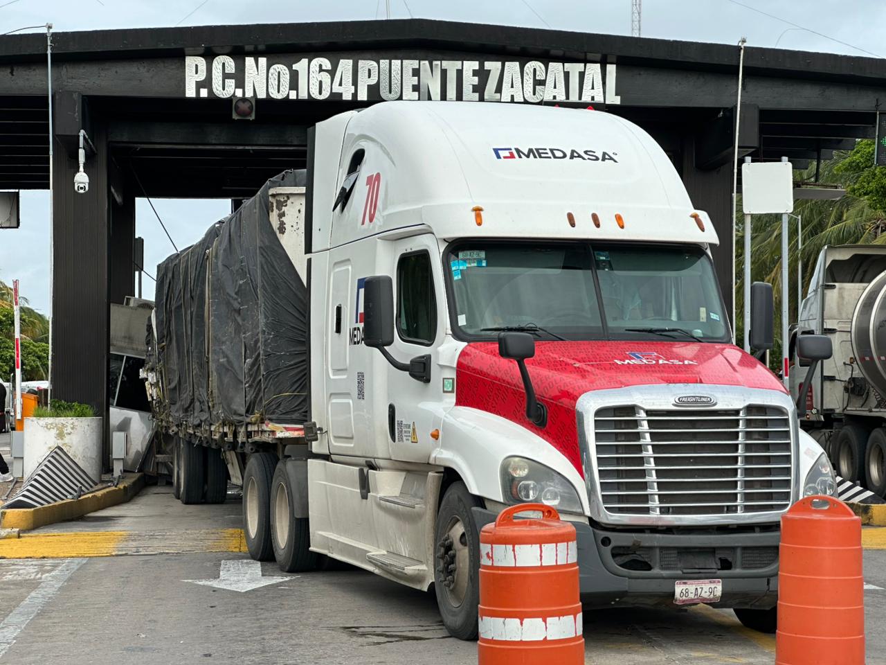 La mañana de este miércoles se registró un fuerte accidente en la caseta del Puente Zacatal, luego de que el conductor de un tractocamión de carga derribara parte de la estructura de cobro con el material que transportaba. Afortunadamente, no se reportaron personas lesionadas, aunque los daños materiales ascienden a varios miles de pesos.
