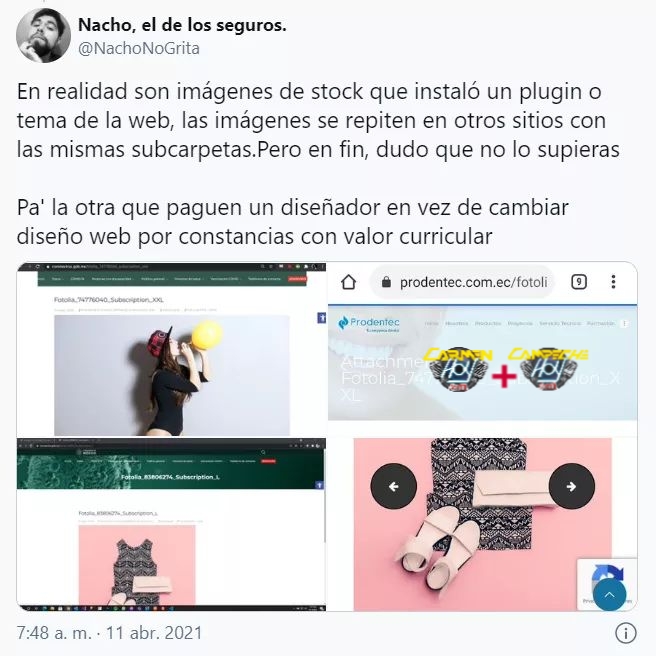 Por su parte uno de los usuarios, señala que es un error de programación y las imágenes pertenecen a una plantilla de WordPress.