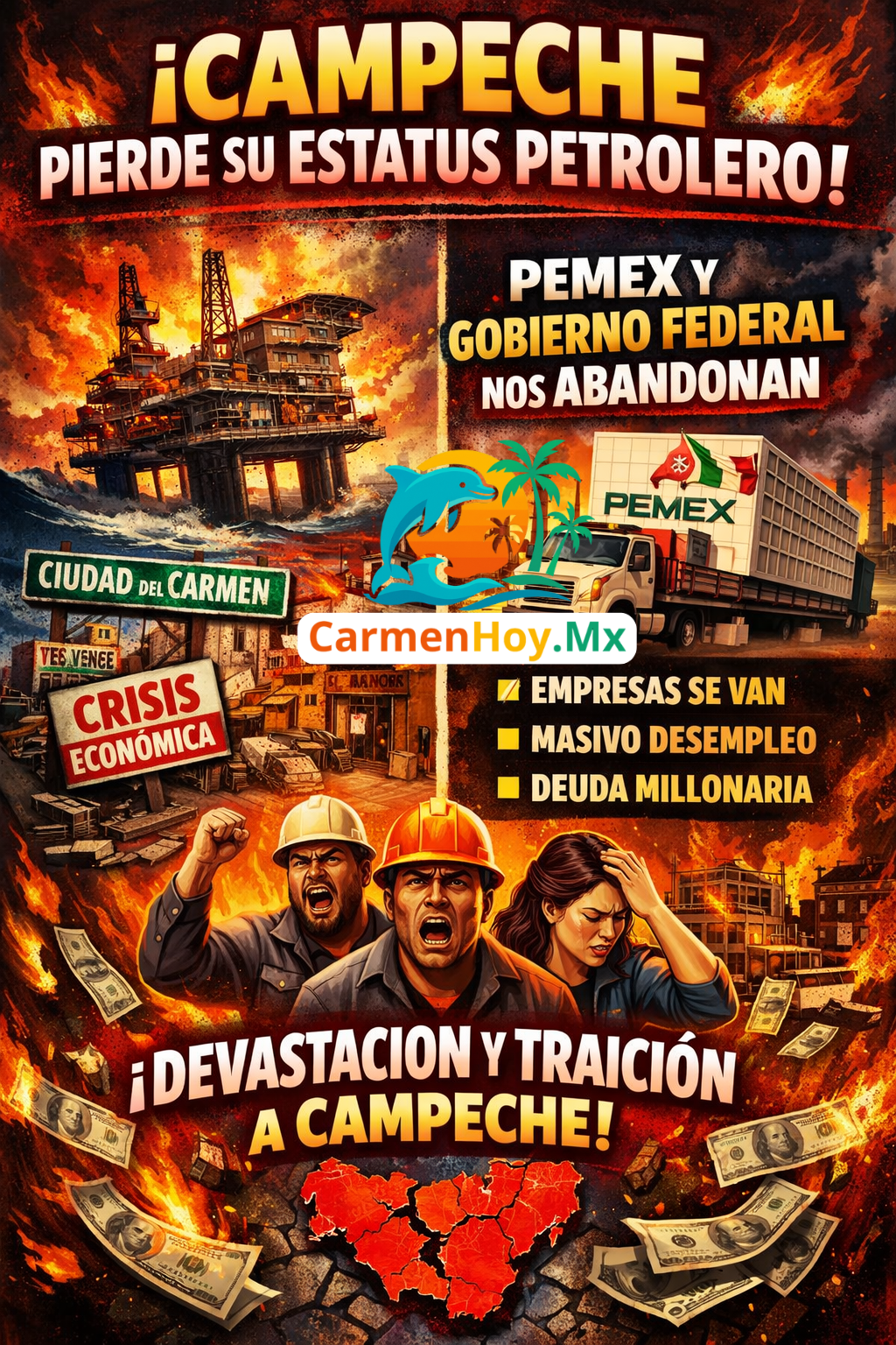Campeche — y particularmente Ciudad del Carmen— ya venía arrastrando una crisis severa, pero esta determinación termina por hundir no solo a la isla, sino a todo el estado. El estatus petrolero no era un título simbólico: representaba recursos, apoyos, inversión, obra pública, empleo y derrama económica. Hoy, todo eso se reduce drásticamente.