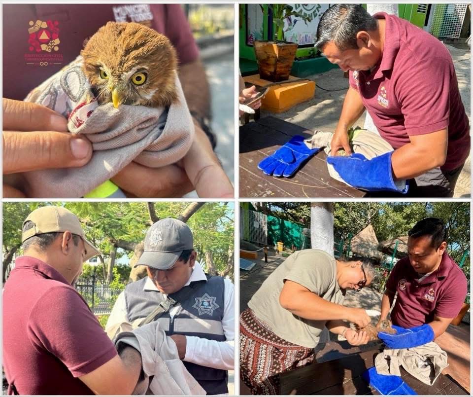 Elementos de Protección Civil Carmen atendieron el reporte de un ave lastimada que fue rescatada por un auxiliar vial de la Policía Municipal Carmen en el Parque Zaragoza.