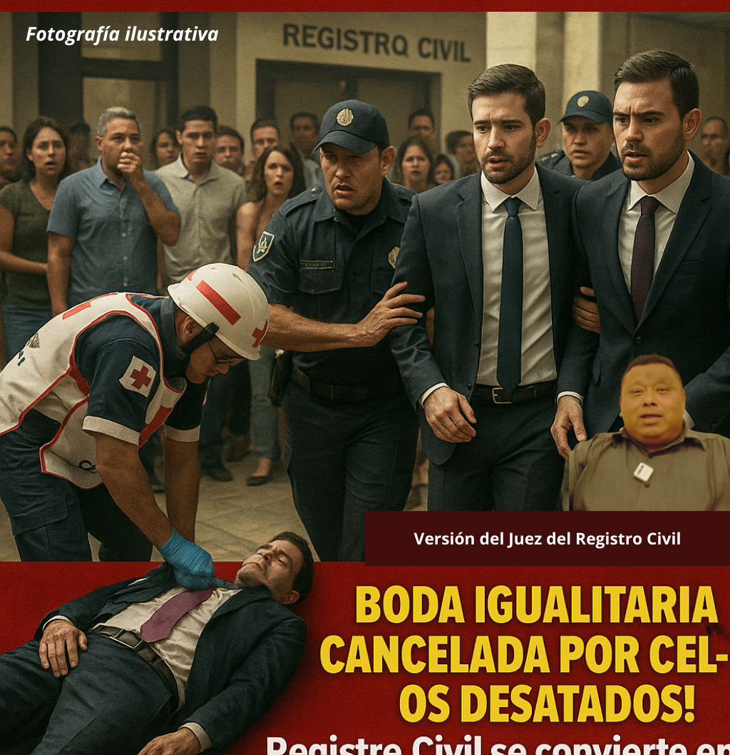 Entre el griterío y los empujones, el juez del Registro Civil, sudoroso y al borde del colapso, no sabía si defender a los novios, al ex despechado o tirarse él también al suelo. Balbuceando nervioso, solo atinaba a gritarles a las tías chismosas que cuchicheaban en las esquinas: “¡Dejen su morbo, dejen su morbo!” mientras intentaba poner orden en una escena más digna de un talk show que de un acto solemne. ⚖️