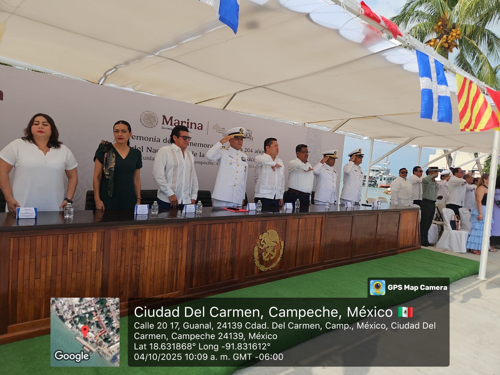 de Ciudad del Carmen estuvo acompañado por el Licenciado José Alejandro Guerrero Cabrera Secretario del H. Ayuntamiento de Carmen; así como de autoridades civiles y navales.