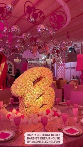 La fiesta fue lujosa y contó con una casa gigante de Barbie, personajes de muñecas con vestuarios coloridos y accesorios y regalitos para los invitados.