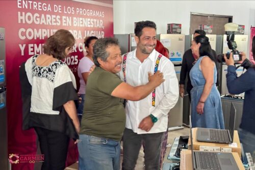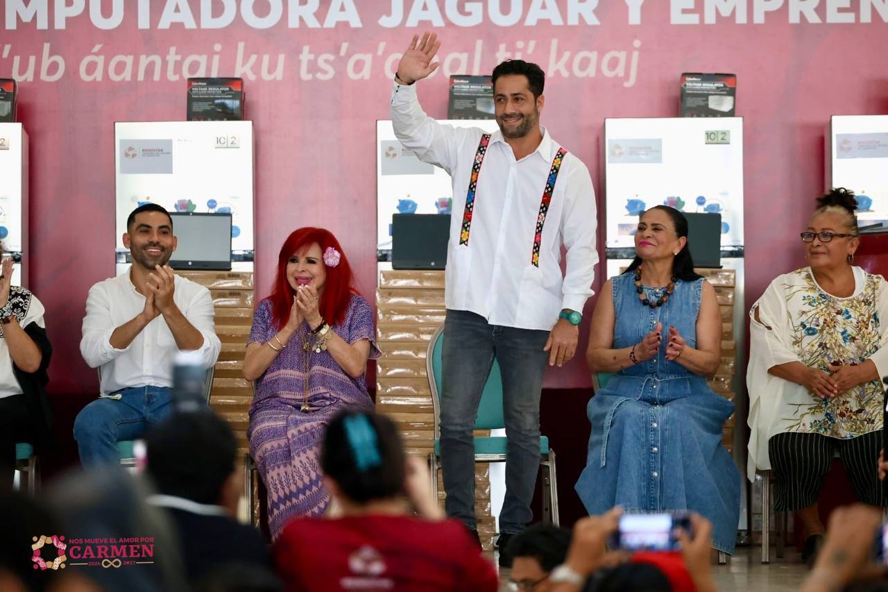 El alcalde Pablo Gutiérrez Lazarus acompañó a la gobernadora Layda Sansores y al titular de la Secretaría de Bienestar Campeche, Esteban Hinojosa Rebolledo, durante la entrega de los programas Hogares en Bienestar ️, Computadoras Jaguar y Emprender Contigo 2025 , realizada en el Casino del Mar.