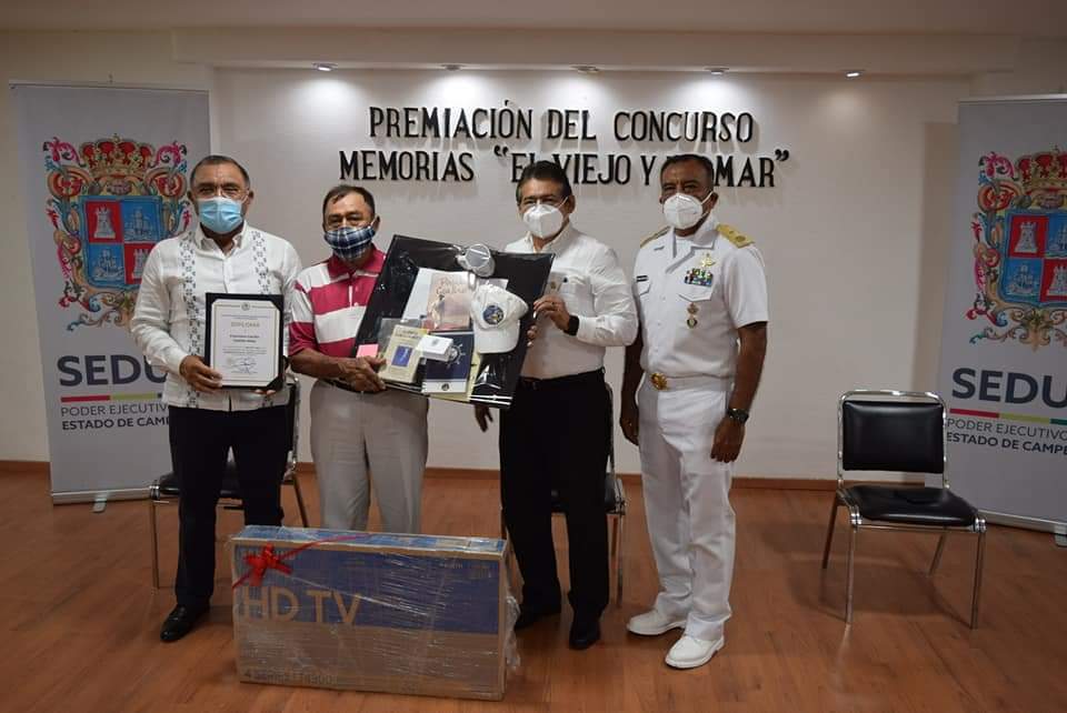Ante el contralmirante Jaime Martín Constantino Herrera, comandante de la Base Aeronaval de Campeche de la Secretaría de Marina Armada de México; el secretario de Educación, a nombre del gobernador Carlos Miguel Aysa González, felicitó a los galardonados por su destacada participación en este concurso, en el que realzaron algo de lo más preciado de nuestra tierra campechana: el mar.