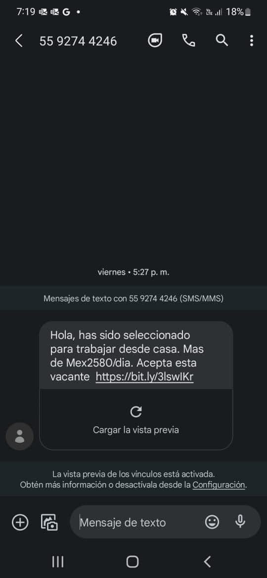 Usuarios reportaron estar recibiendo mensajes de texto de diferentes números en los que les notifican que han sido seleccionados para un puesto de trabajo, con el fin de robar datos e información.