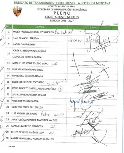 En el documento se anexa la relación de los representantes sindicales que asistieron al pleno de Secretarios Generales, que tomaron conocimiento de la disculpa pública, firmada por Ricardo Aldana.