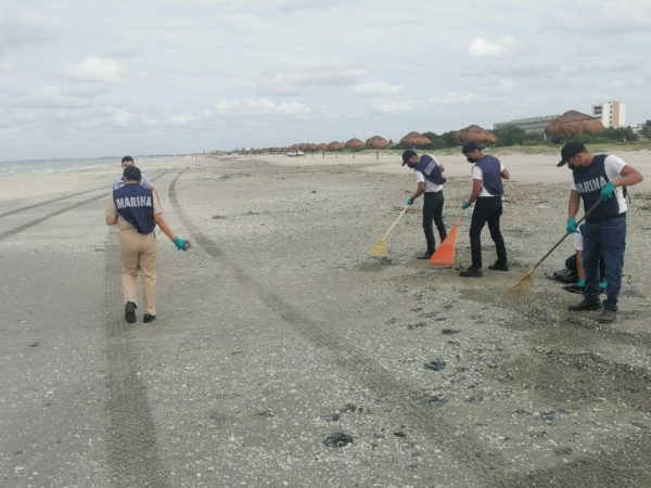 La Secretaría de Marina (Semar) confirmó la presencia de grumos de hidrocarburo a lo largo de 11 kilómetros de la costa frente a la isla del Carmen, y puso en marcha un operativo para la limpieza de las playas.