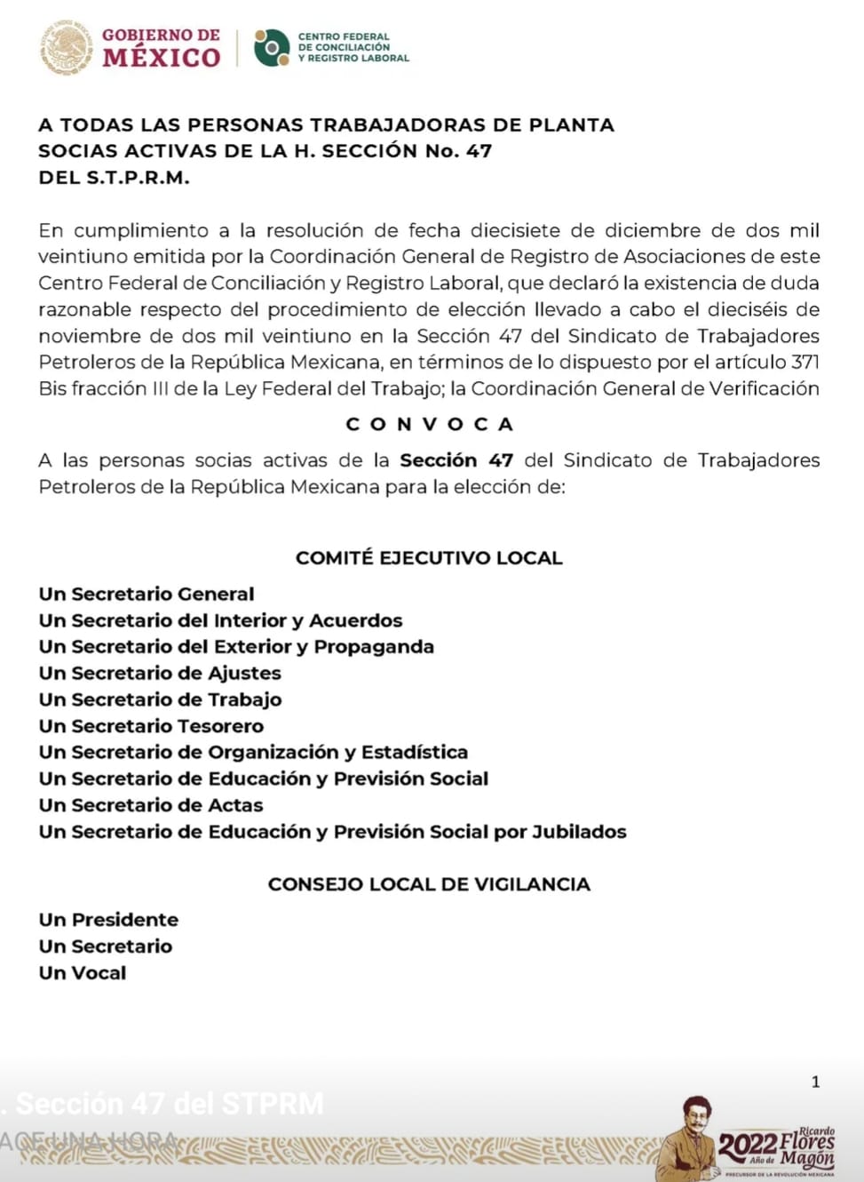 El lunes 28 de marzo se llevará a cabo la jornada electoral de todos los que conforman la Sección 47 del S.T.P.R.M.