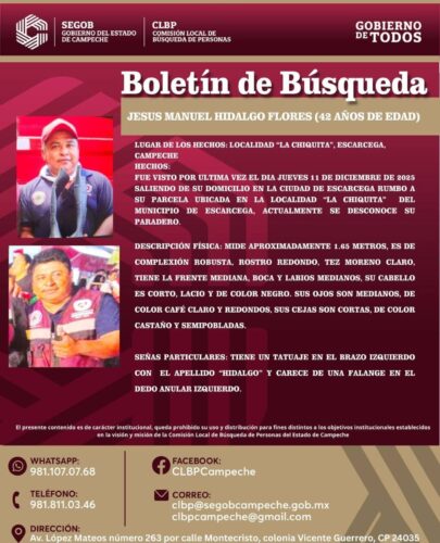 3. Jesús Manuel de 42 años de edad, desaparecido desde el 11 de diciembre