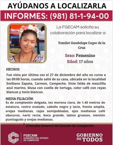 7. Yamilet Guadalupe de 17 años de edad, vista por última vez el 27 de diciembre