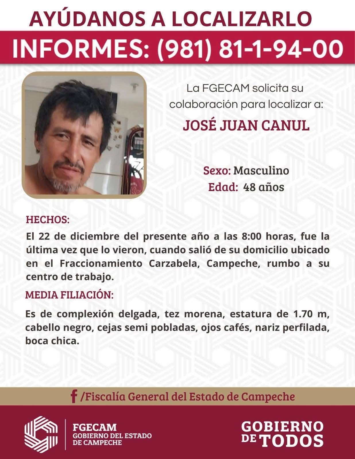 2. Jose Juan Canul de 48 años de edad, desaparecido desde el 22 de diciembre