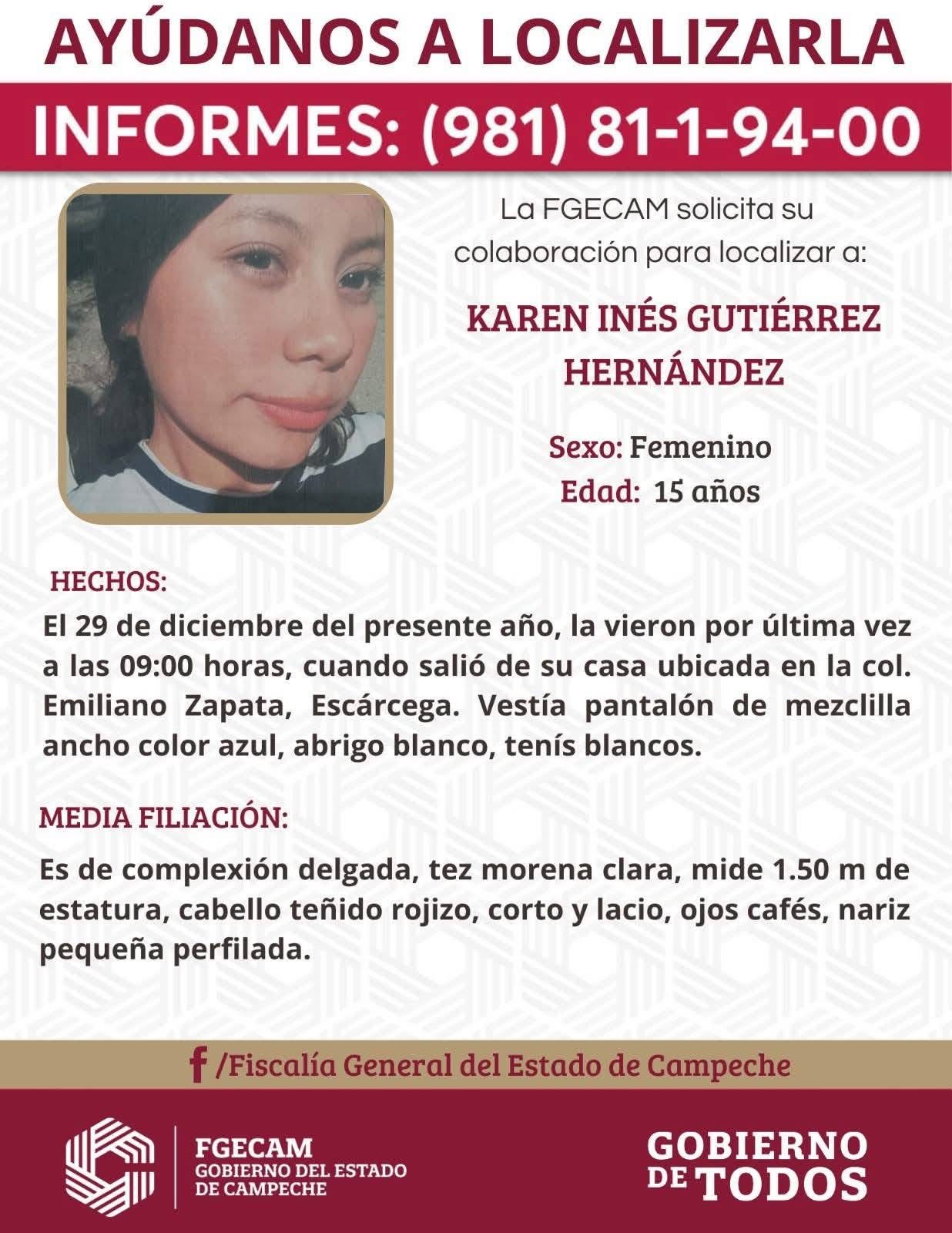 4. Karen Inés de 15 años de edad, desaparecida desde el 29 de diciembre