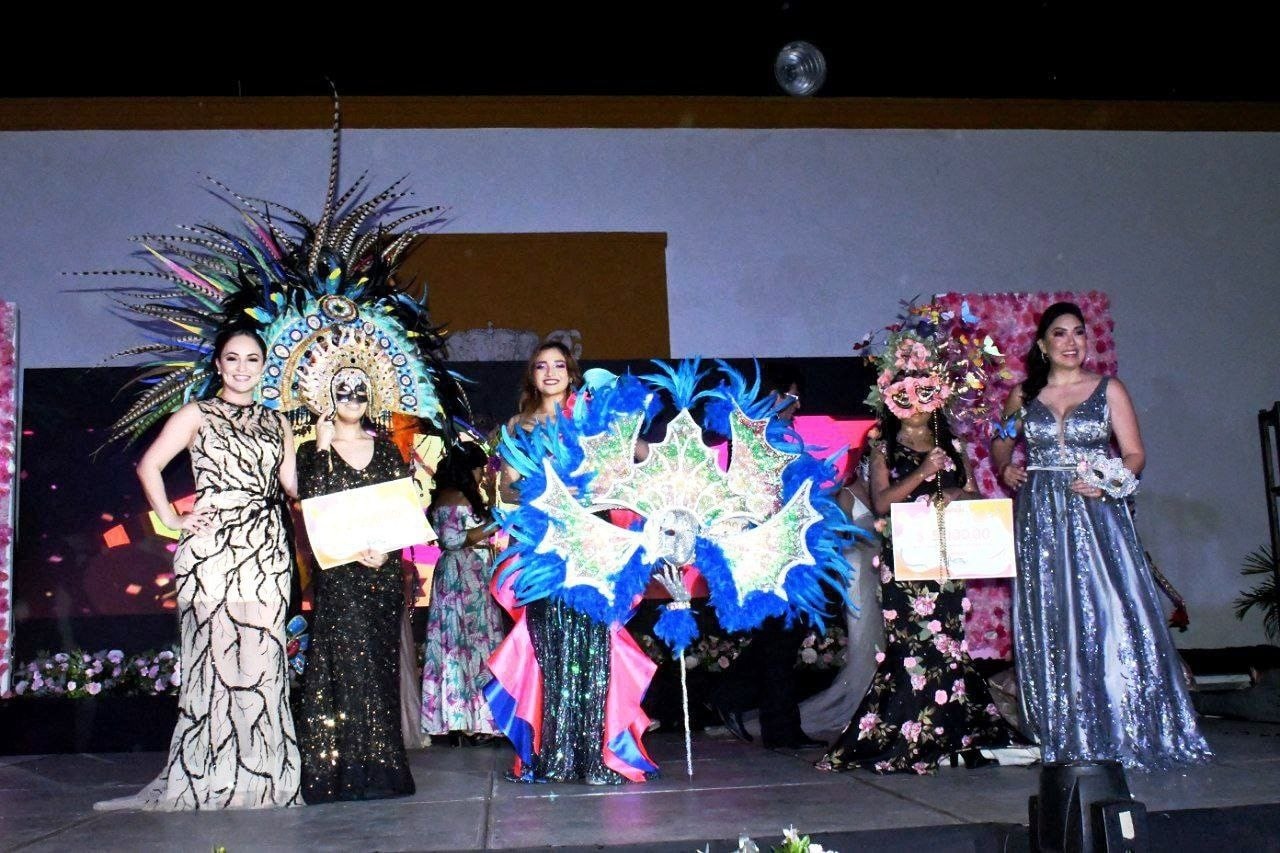 El patio central de Palacio Municipal fue el escenario para el anuncio de los soberanos que encabezarán las fiestas carnestolendas del próximo año, en una noche donde se realzó el Concurso de Antifaz en el marco de la conmemoración del Carnaval 2022, resultando ganador el antifaz “Danza de las Mariposas” de Diana Patricia Carrillo Montejo.