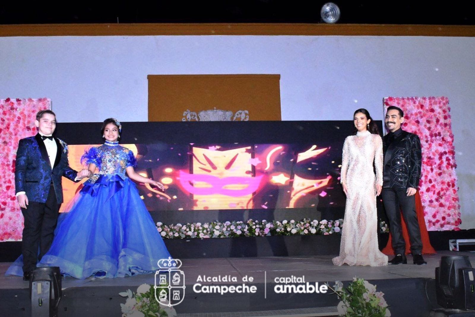 Enseguida, fueron presentados los futuros soberanos del Carnaval de Campeche 2023, los niños Samara Bolio Franco y Oscar Esquivel Soberanis, como Reyes Infantiles del Carnaval, y la Srita. Cecilia Soberanis Illescas y Carlos Alberto Ponce Carrillo, Reyes del Carnaval de Campeche para la edición 2023.