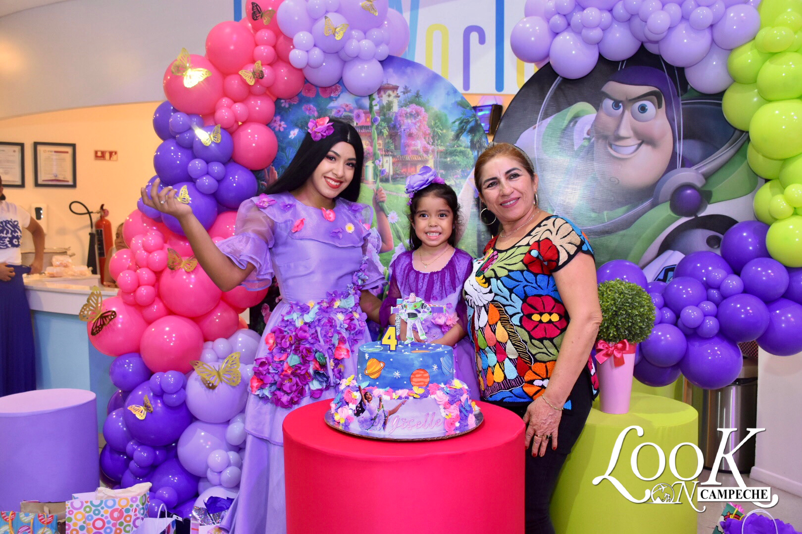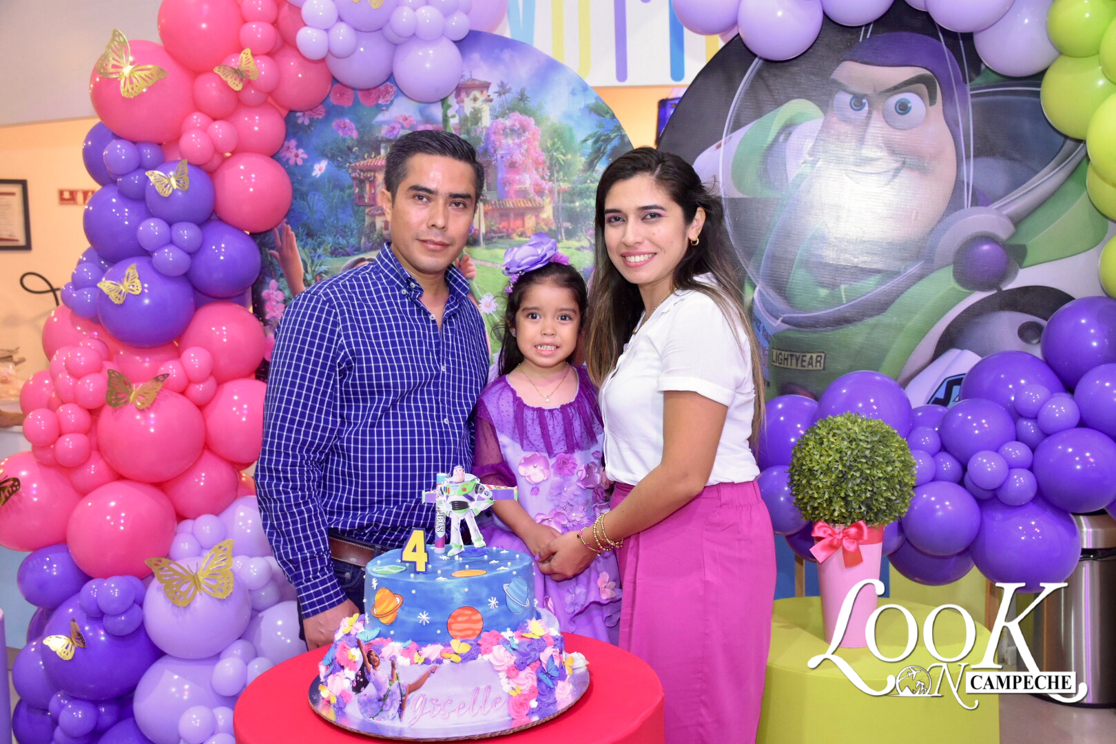 La tarde del 16 de septiembre los papis de Giselle los Diego Torres y Citlali Santini se pusieron guapos y le celebraron sus 4 años a la pequeña Gigi como es conocida por sus amiguitos en el salón de eventos Kids World Carmen con una doble temática de Buzz Lightyear e Isabella de encanto en el que para recibir a sus invitados la cumpleañera vestía de buzz y a media fiesta utilizó el de Isabella.