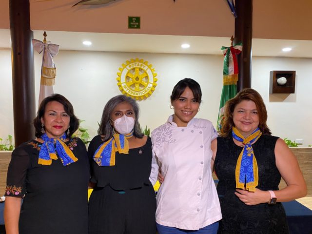 Las Damas del Club Rotario Rosy Trejo, Bruna Erika Zamora y Ángela Martínez, junto a la Chef Vinixxa