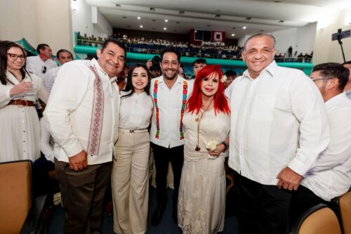 Ciudad del Carmen.- En Sesión Solemne de Cabildo celebrada en el Teatro Carmelita, el alcalde Pablo Gutiérrez Lazarus rindió cuentas a los carmelitas del trabajo realizado durante su primer año de gobierno, en un evento multitudinario al que asistieron como invitadas especiales la Gobernadora Layda Sansores San Román y su hermana Laura, presidenta del Sistema DIF Estatal.