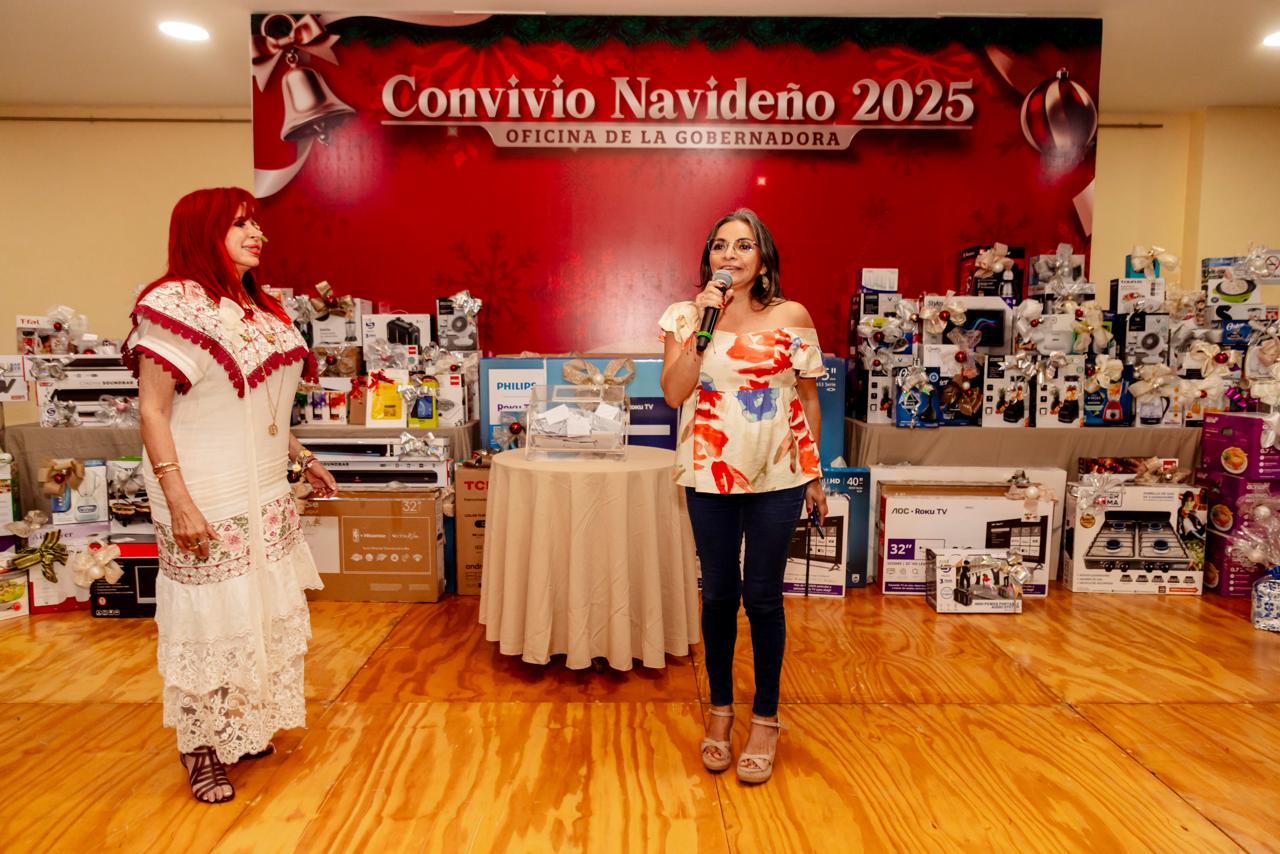 En un ambiente de cordialidad, unidad y espíritu navideño, la Gobernadora, Layda Sansores San Román, encabezó el tradicional convivio navideño con el personal de su oficina como muestra de reconocimiento al trabajo y compromiso desempeñado a lo largo del año.