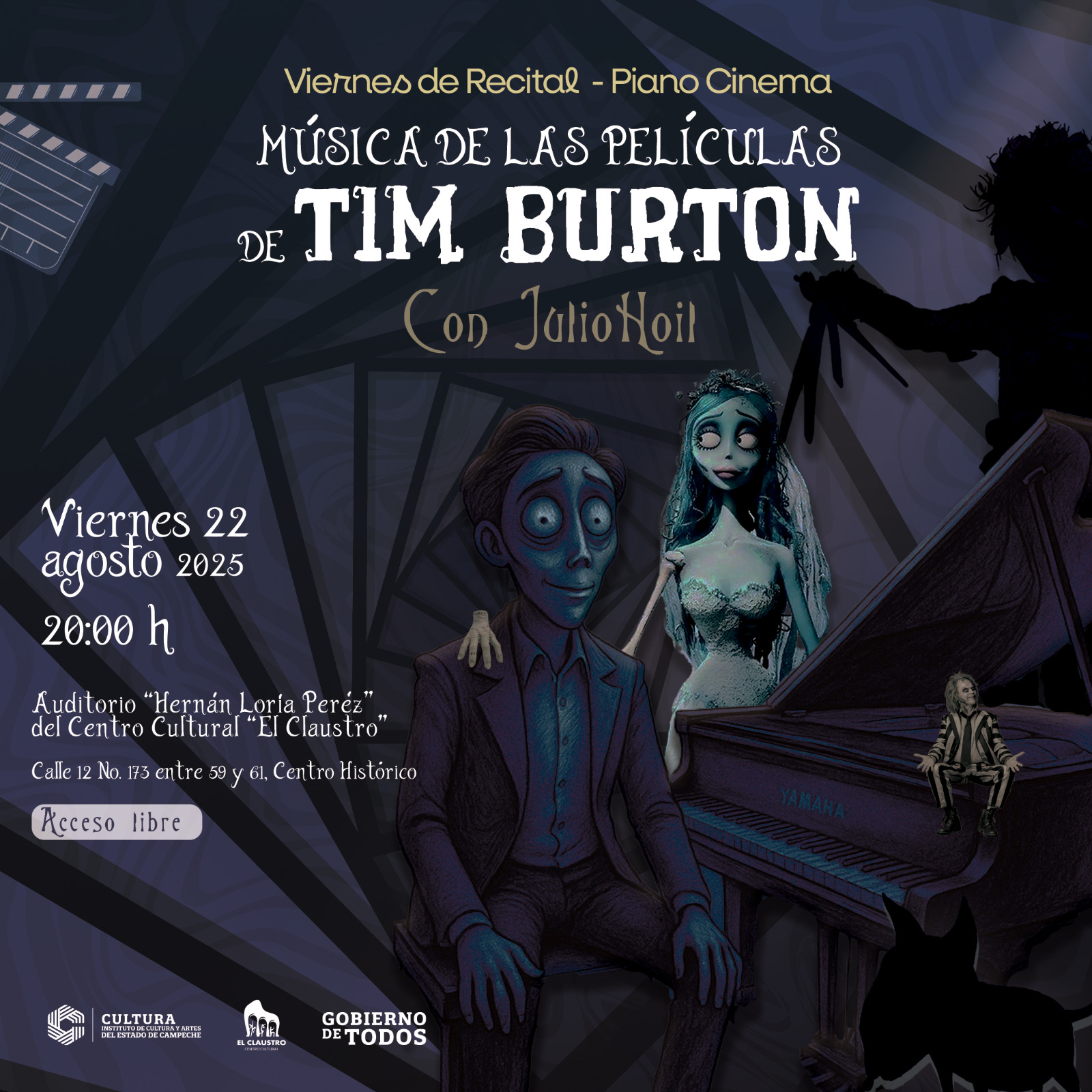 te invita al Piano Cinema con góticas melodías de Tim Burton con Julio Hoil Lee.
