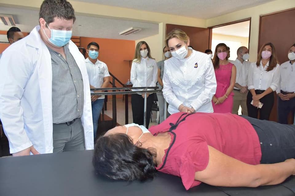 La entrega de equipo de terapia al Centro Regional de Rehabilitación CRRI-Carmen tiene la finalidad de ampliar y mejorar los servicios que ofrece a sus usuarios, afirmó, la presidenta del Patronato del DIF Estatal, Victoria Damas de Aysa en gira por ese municipio, acompañada por la directora general del SEDIF, Sonia María Castilla Treviño y por la presidenta del SMDIF, Viridiana Suárez de Rosas, quienes también atestiguaron la donación de lentes.