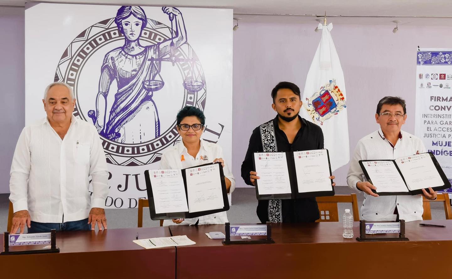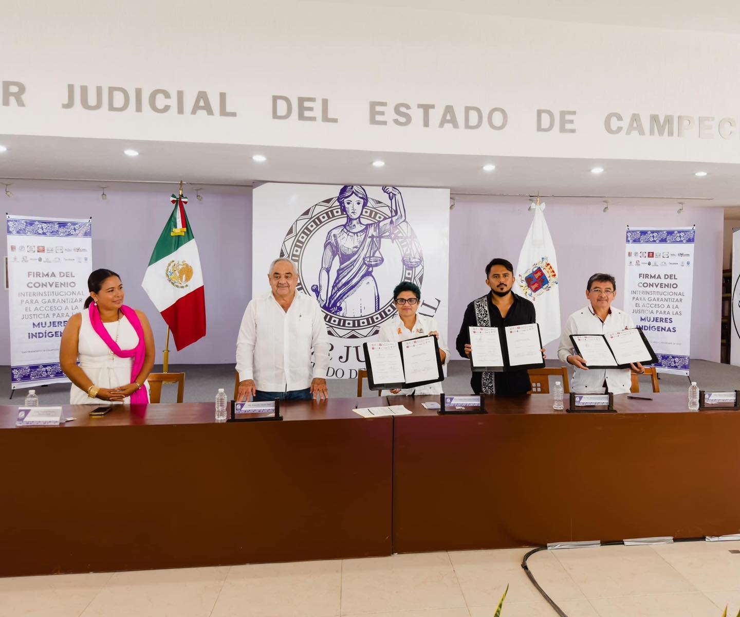 Los Tres Poderes del Estado (Ejecutivo, Legislativo y Judicial), Los Ayuntamientos de Calkiní, Champotón, Hecelchakán, Escárcega, Seybaplaya, Dzitbalché, Tenabo, Carmen, Palizada, Calakmul, Candelaria y Hopelchén, así como la Junta Municipal de Sabancuy; e Instituciones como: Seduc, Bienestar Estatal, Secretaría de Salud, Secretaría de Seguridad Pública, Consejo Estatal de Población, Sistema de Protección Integral de Niñas, Niños y Adolescentes, Centro Estatal de Seguridad Pública, Sistema DIF Estatal, Fiscalía, firmaron un Convenio Interinstitucional que tiene como objetivo que las Instituciones de Gobierno, los municipios y junta local, coadyuven con el Poder Judicial del Estado, en el programa “Justicia Alternativa, una Justicia cerca de ti, las Jornadas de Acceso a la Justicia para las Mujeres Indígenas y en la Red Mujer por Mujer, acercando sus propios programas, proyectos, obras o acciones durante la ejecución de las referidas actividades, para establecer mecanismos de colaboración y coordinación en el marco de sus respectivas atribuciones con la finalidad de conjuntar esfuerzos en el cumplimiento de las obligaciones del Estado para la protección de las mujeres indígenas víctimas de la violencia de género, en observancia al marco jurídico nacional, local e instrumentos internacionales en la materia.