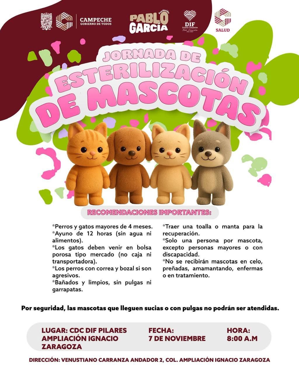 El #GobiernoDeTodos a través de Salud Campeche, el Sistema DIF Estatal Campeche y la Fundación Pablo García, invita a la ciudadanía a participar en la Jornada de Esterilización de Mascotas.