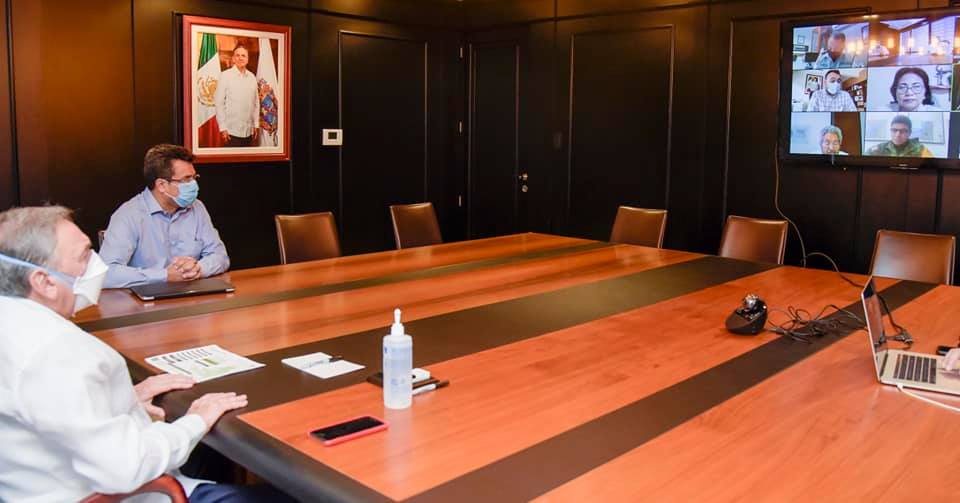 A través de la reunión virtual con integrantes de la Mesa Estatal para la Construcción de la Paz, el gobernador Carlos Miguel Aysa González dio seguimiento a los reportes de COVID-19 y de seguridad de cada municipio del estado; durante la videoconferencia y junto al secretario general de Gobierno, Jorge Argáez Uribe, el mandatario estatal reiteró el llamado a respetar los protocolos sanitarios que ha emitido la Secretaría de Salud para evitar contagios de COVID-19.