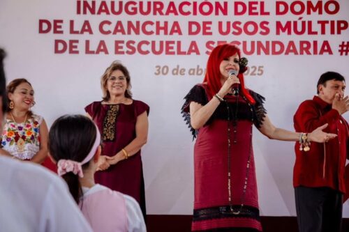 Mediante una inversión total de $3.1 millones, la Gobernadora, Layda Sansores San Román, encabezó hoy la inauguración del domo de la cancha deportiva y de usos múltiples de la Escuela Secundaria Técnica 27, en la unidad habitacional Fidel Velázquez y, posteriormente, encabezó y atendió personalmente a vecinos de la colonia Minas en su programa de Audiencias Ciudadanas en Territorio.