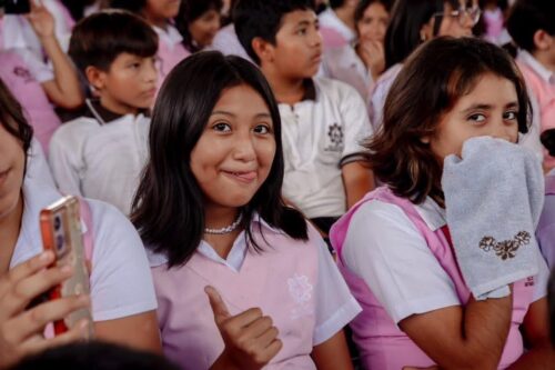 También resaltó el impacto de los programas sociales educativos porque “nuestra política educativa siempre es el ciudadano, siempre es el alumno. Ustedes tienen hoy en día la beca Rita Cetina y luego pasarán a la prepa con la beca Benito Juárez”.