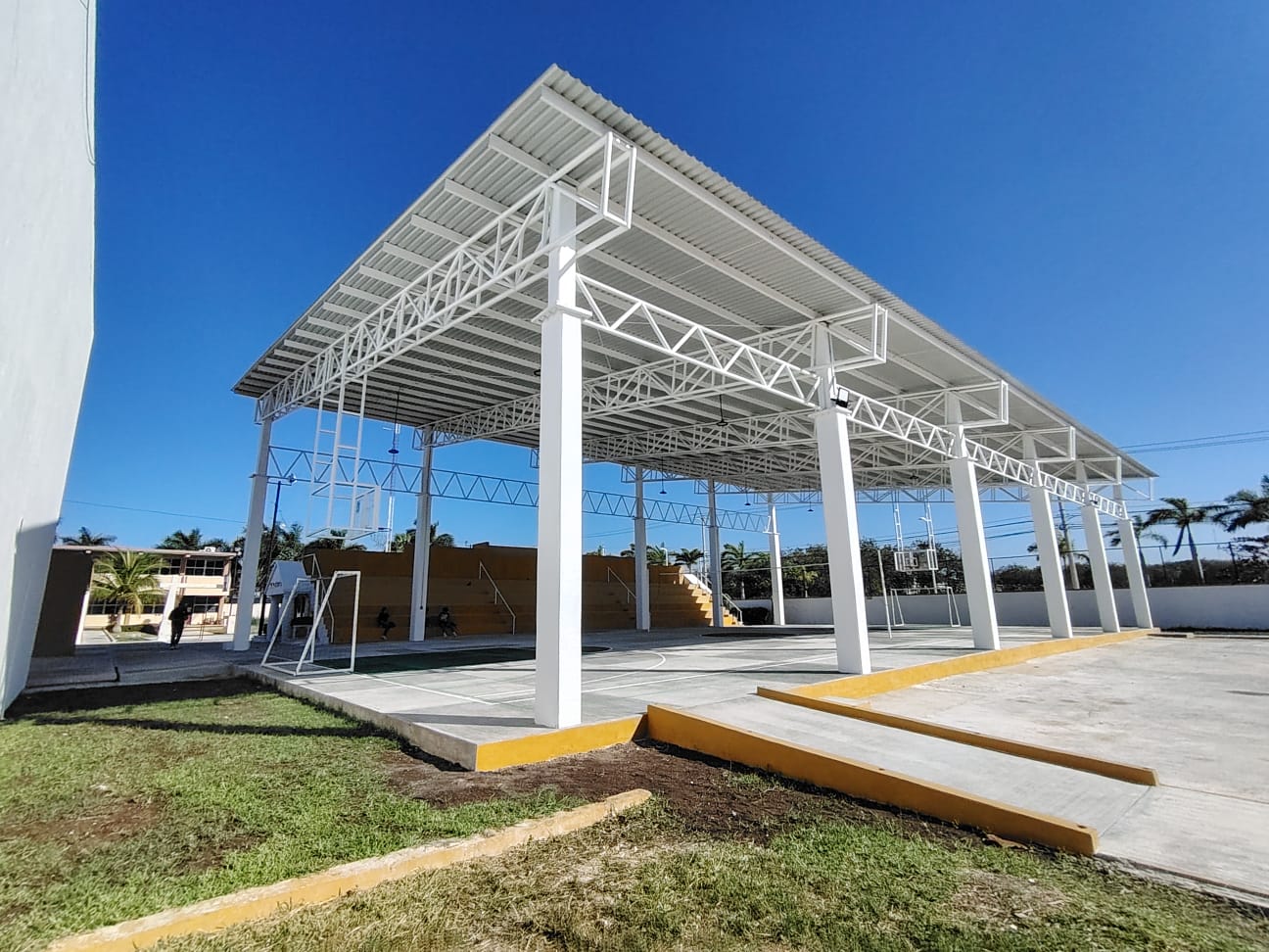 En el Campus II de la Esc. Prep. “Ramón Berzunza Herrera” del IC, se llevó a cabo la construcción de la techumbre de la cancha. Por lo que pronto los alumnos de esta institución podrán disfrutar de este nuevo espacio.