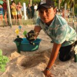 En el campamento tortuguero de San Lorenzo, SEMABICCE realiza la liberación simbólica de crías de tortuga Carey.