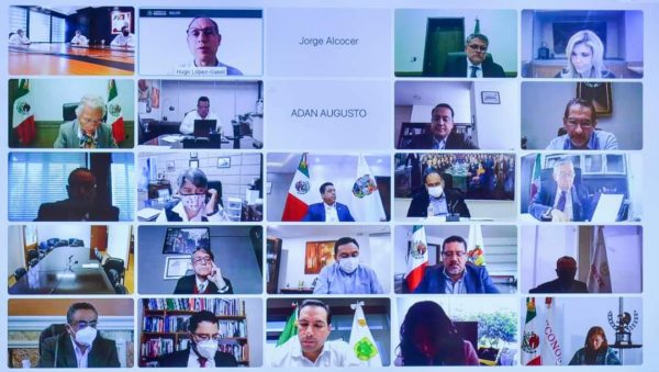 El gobernador Carlos Miguel Aysa González sostuvo una reunión virtual con la Comisión Ejecutiva de Salud de la Conferencia Nacional de Gobernadores en la que participaron los secretarios de Gobernación, Olga Sánchez Cordero; de Salud, Jorge Alcocer Varela; y de Educación, Delfina Gómez Álvarez.