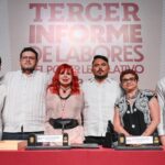 “En este Tercer Año Legislativo concentramos nuestro trabajo en realizar las reformas constitucionales que urgían a nuestro pueblo, nos pusimos como ideal crear los cimientos que nuestra Entidad necesita para reconstruirse, para avanzar, para transformarse en el Campeche de derechos plenos”, afirmó el Dip. Antonio Jiménez, presidente de la Junta de Gobierno y Administración del H. Congreso del Estado de Campeche, durante el #3erInforme de Actividades de la 64 Legislatura estatal, documento que previamente entregó de manera digital a la Gobernadora Constitucional, Licda. Layda Sansores San Román y; a la Mtra. Virginia Leticia Lizama Centurión, Magistrada Presidenta del H. Tribunal Superior de Justicia y del Consejo de la Judicatura local.