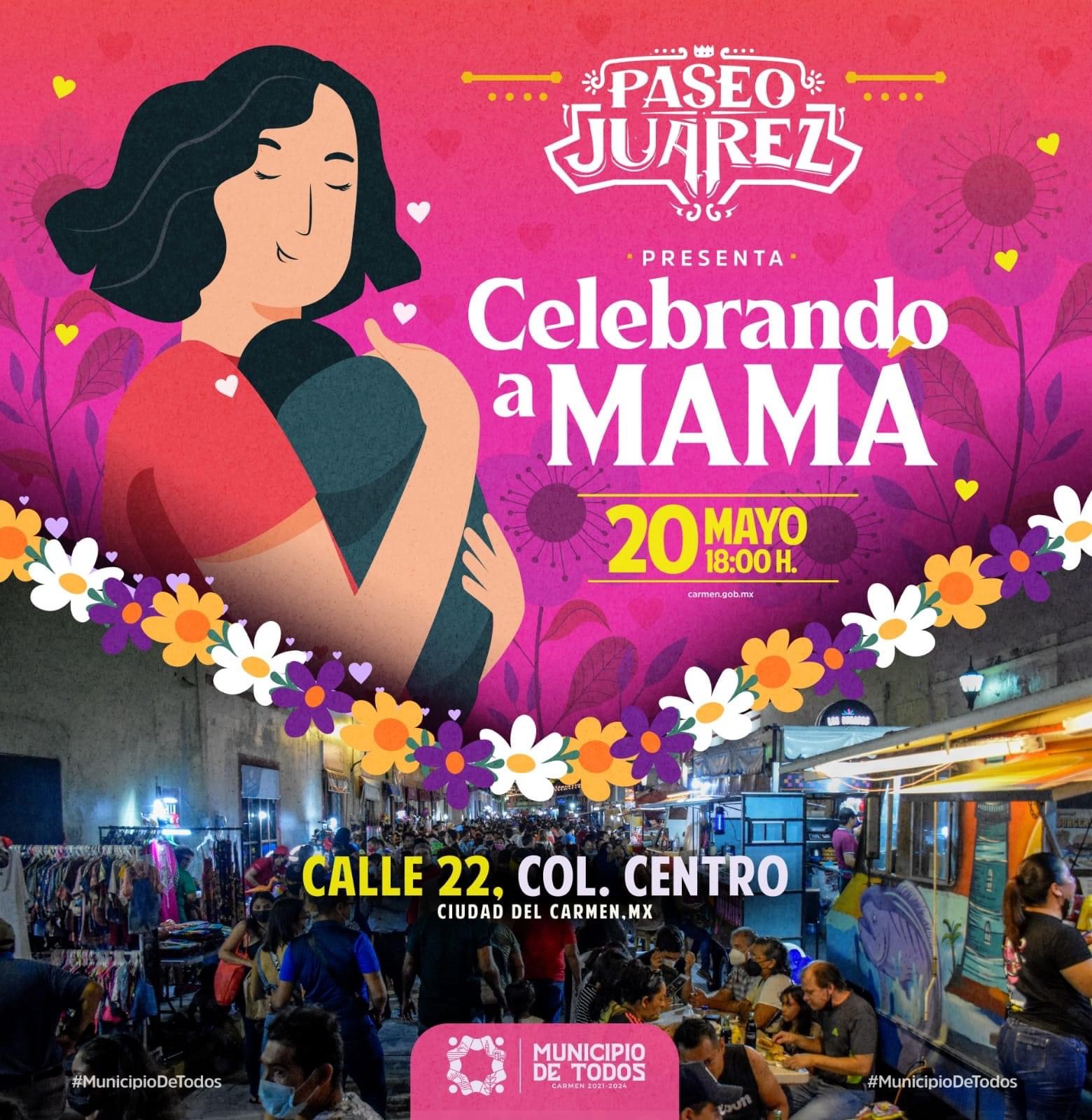 En el Gobierno Municipal de Carmen seguimos celebrando a las madres carmelitas, ahora en el #PaseoJuárez edición Celebrando a Mamá, este sábado 2️⃣0️⃣ de mayo desde las 6:00 PM ¡Toda la familia a pasarla bien con la reina del hogar!
