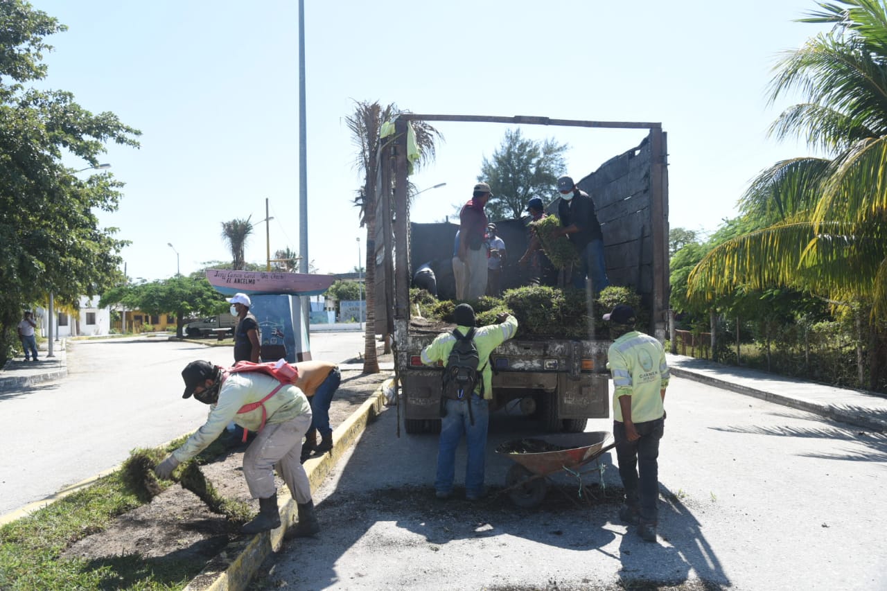 En el recorrido del embellecimiento del Pueblo Mágico de Isla Aguada el Munícipe detalló que se colocó pasto en los camellones en las avenidas principales de Isla Aguada, así como también de la pintura en las guarniciones de las banquetas de las principales calles de la ciudad.