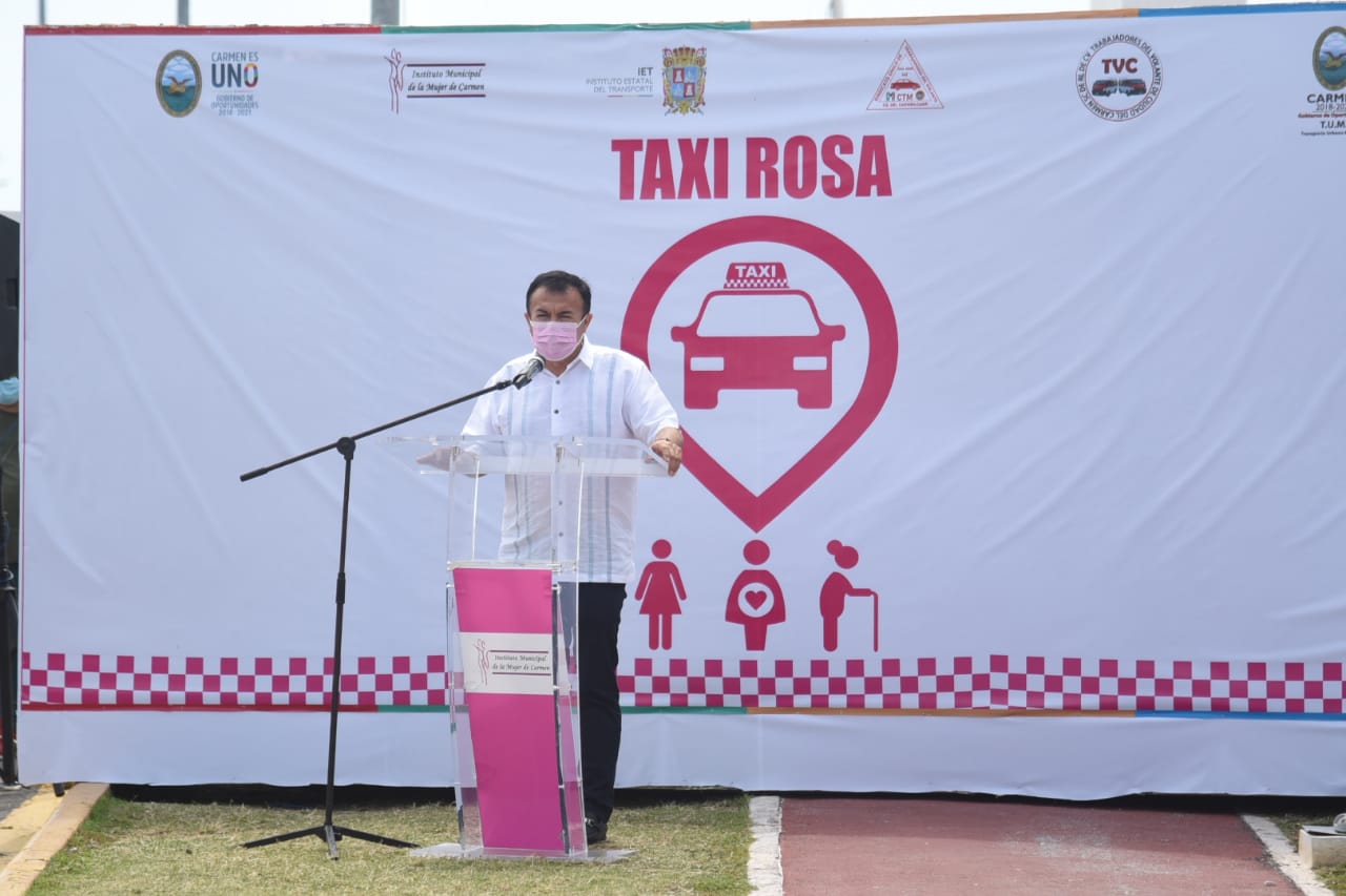 “Este gobierno no descansará de buscar cosas innovadoras, servicios que normalmente no se dan en algunos municipios del Estado de Campeche, hoy somos el primer Municipio que echamos a andar el Taxi Rosa”, expresó.