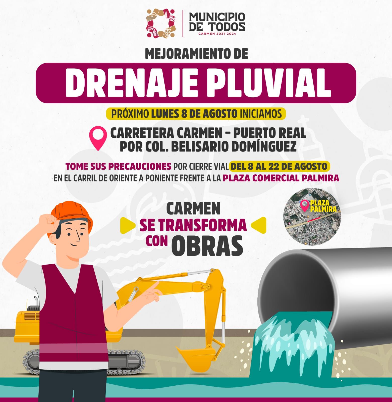 👉🏽 Tome sus precauciones por cierre vial ❗🚗 del 8 al 22 de agosto en el carril de oriente a poniente ❌⬅️❌ frente a la plaza comercial