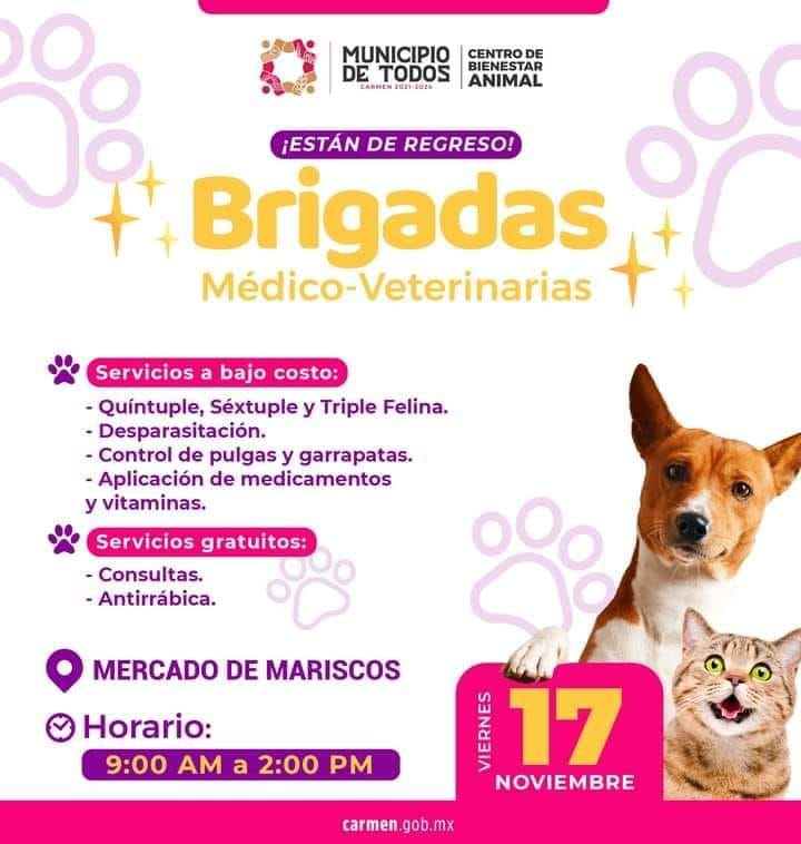 HOY la brigada Médico-veterinaria regresa al mercado de mariscos con consultas gratuitas y vacuna antirrábica, desparasitaciones a bajo costo y control antipulgas-garrapata