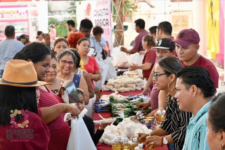 Mercadito DIF CARMEN en el Fraccionamiento Puente de la Unidad beneficiando a sus vecinos con la Canasta Básica Gratis