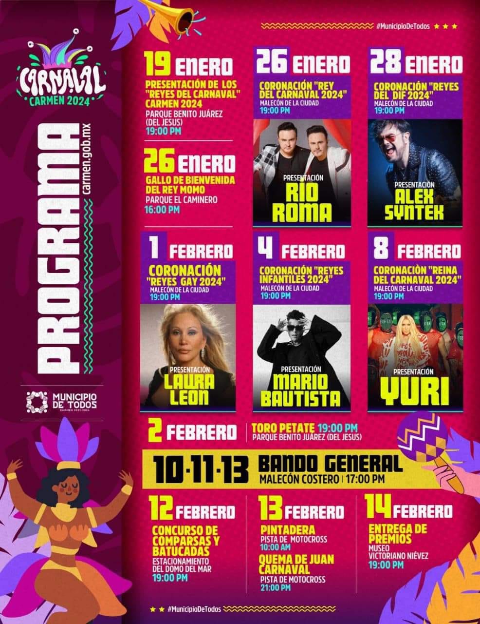 Río Roma iniciará los conciertos del Carnaval de Carmen 2024, te presentamos la cartelera oficial anunciada por el alcalde Pablo Gutiérrez Lazarus