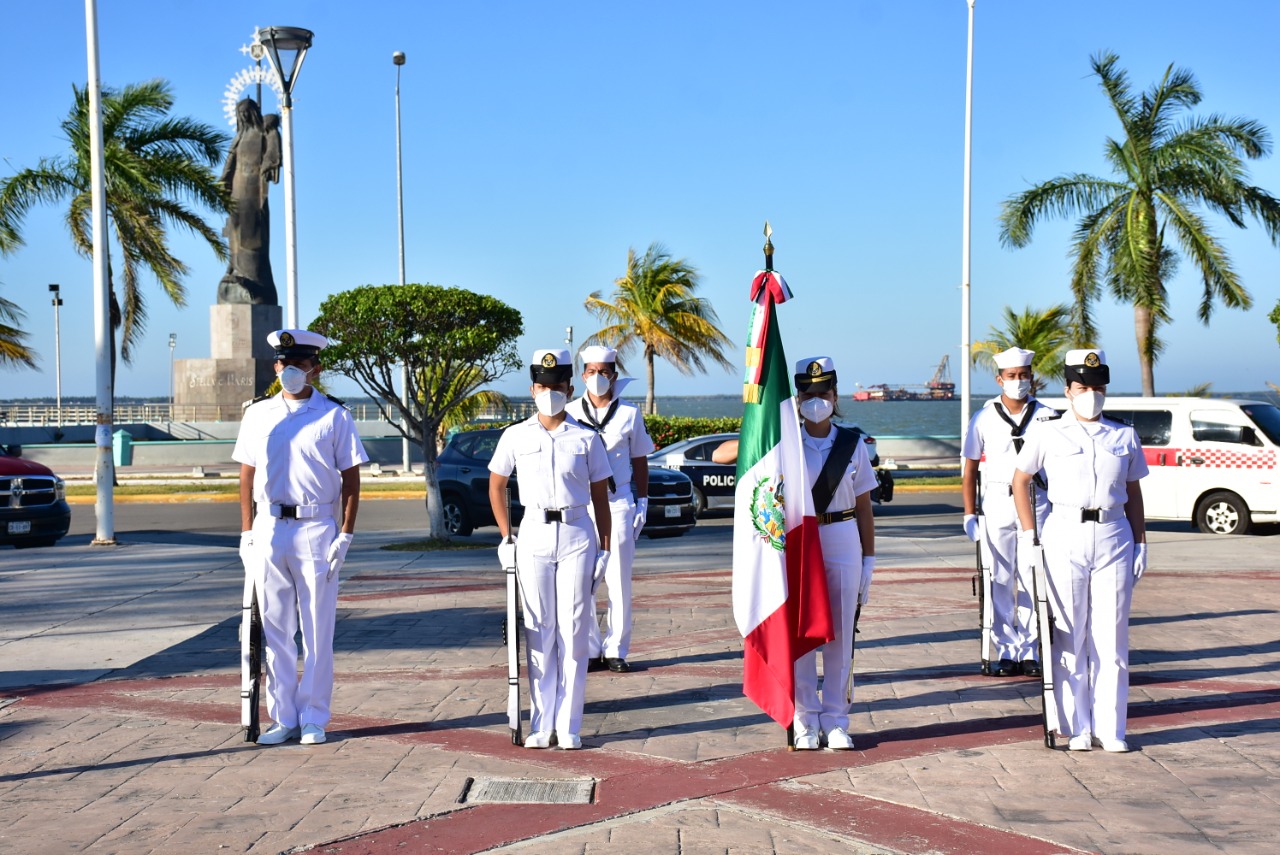 Durante el evento se realizaron los honores a la bandera con el apoyo de la Séptima Zona Naval y donde los asistentes entonaron el himno nacional mexicano y el campechano.