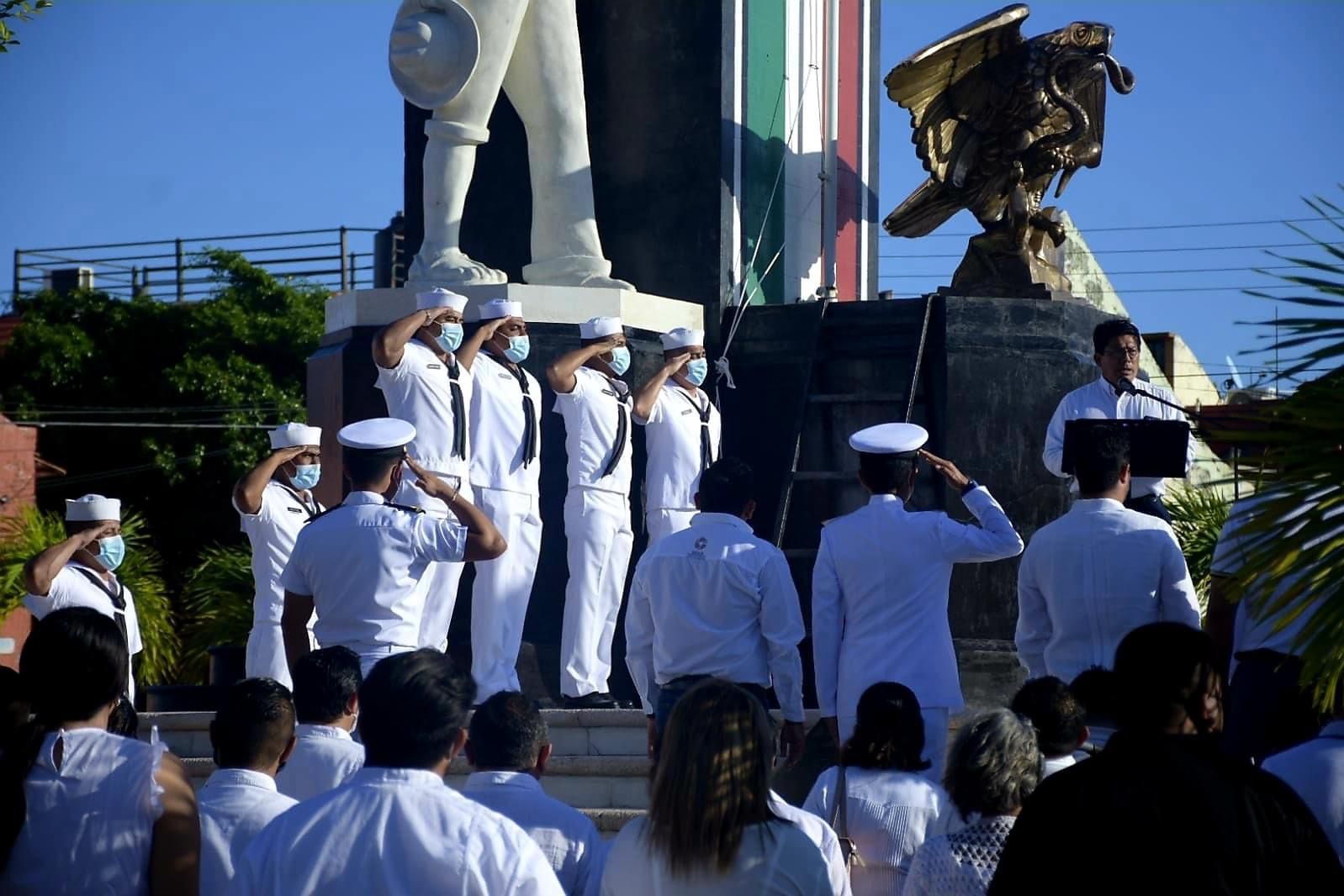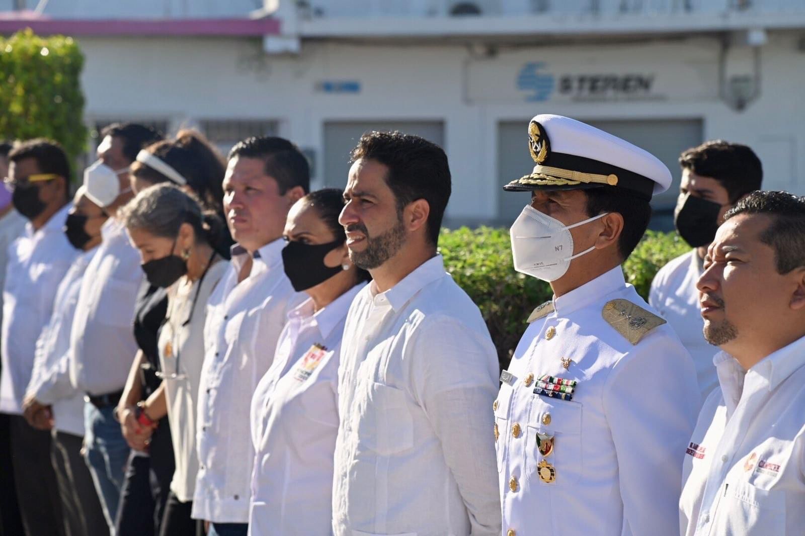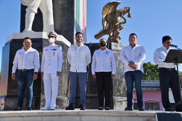 Esta mañana se celebró el Homenaje Cívico por el Día de la Bandera de México, que se efectuó en el Monumento a la Bandera, encabezado por el Alcalde, Pablo Gutiérrez Lazarus; la Presidenta del Patronato DIF Carmen, la Sra. Rosemarie Lazarus Jaber; el Secretario del Ayuntamiento de Carmen, Luis César Augusto Marín Reyes; el Vicealmirante del Cuerpo General Diplomado Estado Mayor, Juan Martín Aguilar Morales; así como funcionarios públicos, regidores, directores, coordinadores, personal naval, policías, autoridades educativas y público en general.