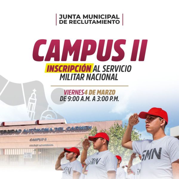 El Gobierno Municipal de Carmen, a través de la Junta Municipal de Reclutamiento, convoca a jóvenes de la generación 2004 y remisos (1983-2003) a inscribirse al Servicio Militar Nacional (SMN).