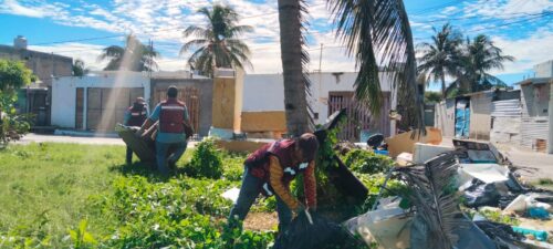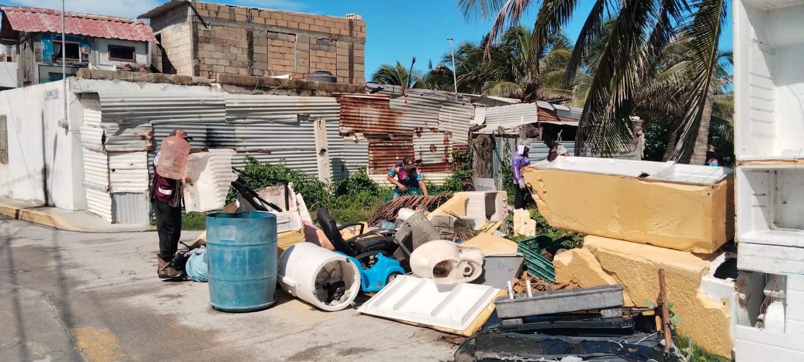 Mientras un equipo de ZOFEMAT retira #sargazo en Playa norte , otro se encarga de recolectar basura y cacharros en la colonia Bivalbo.